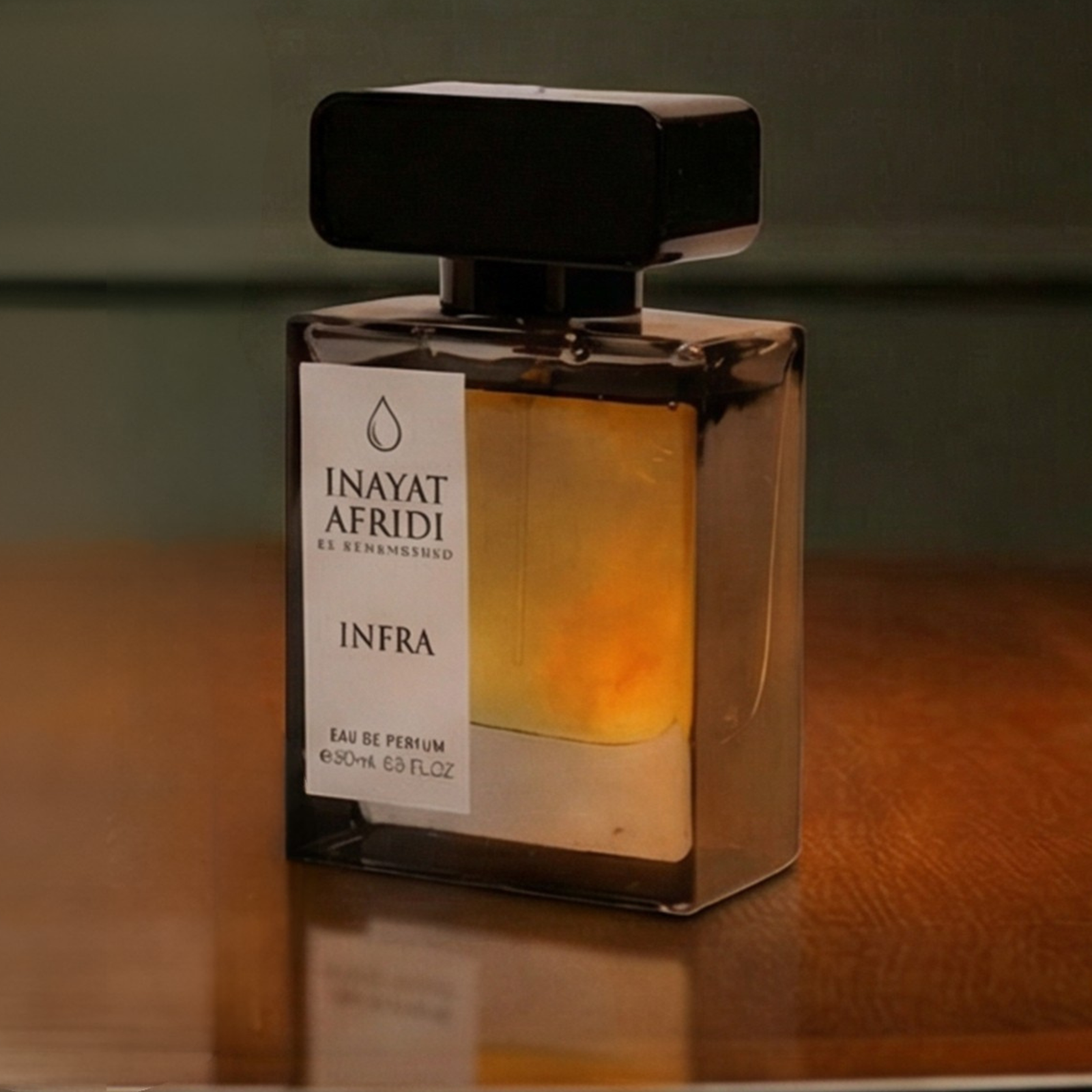 Infra opens with a warm and slightly spicy freshness that immediately feels rich and inviting. As it develops, the fragrance reveals a deep woody heart with subtle amber warmth. The base settles into a smooth, comforting richness that lingers elegantly on the skin—strong, refined, and memorable.